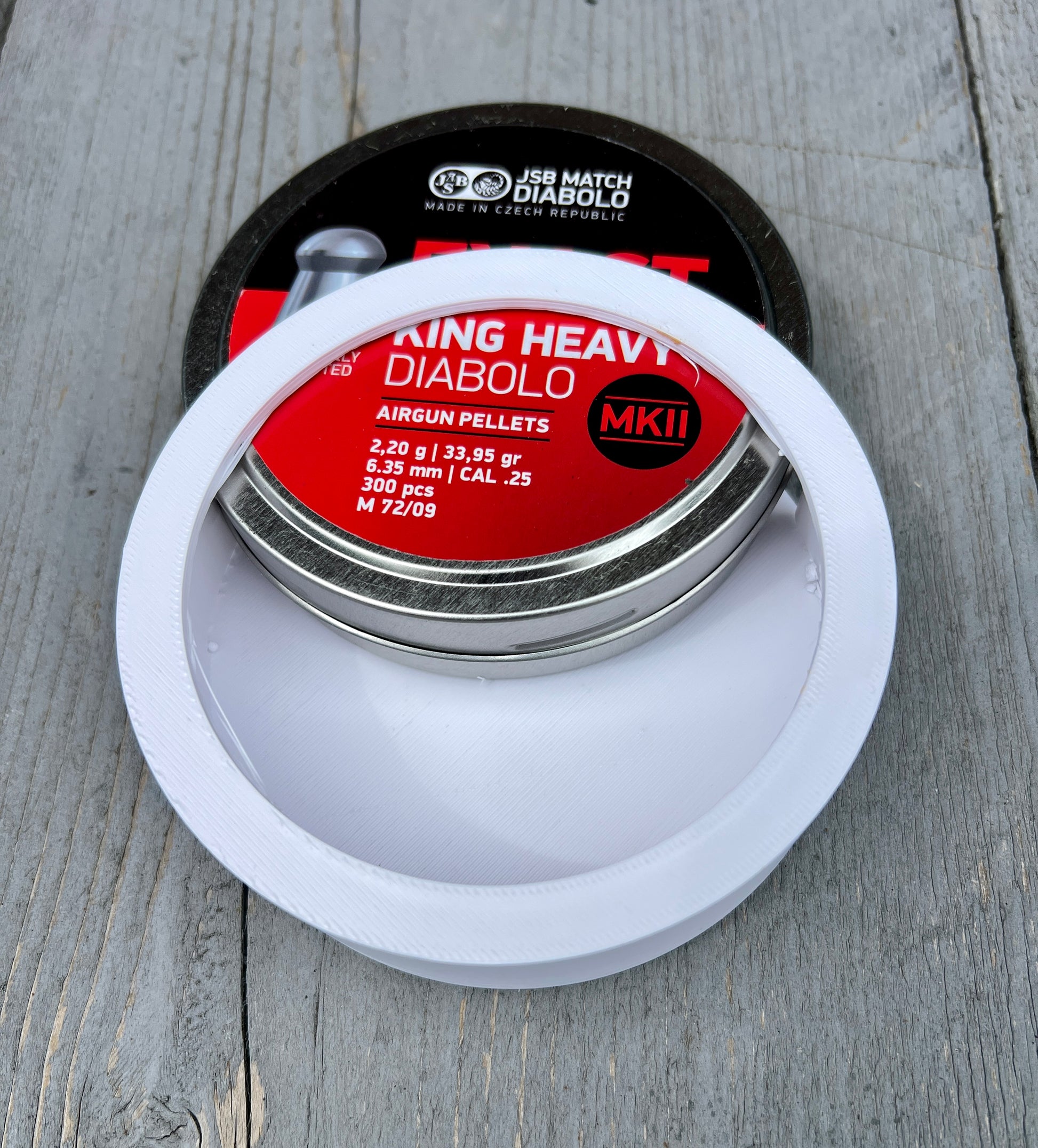 Deze houder is voor de "grote" doos met 350 of 500 kogels.
